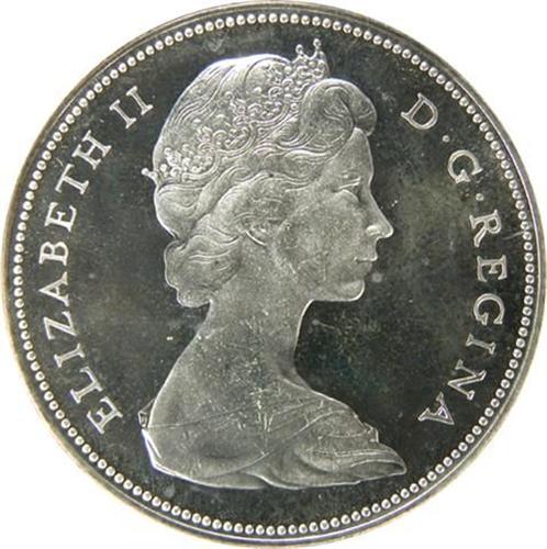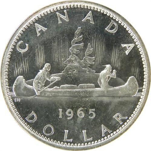 Canada Silver Dollar 1965 Type 3 PCGS PL-67. This is a superbly lustrous and near flawless untoned piece with ultra heavy cameos. It is tied highest graded by PCGS