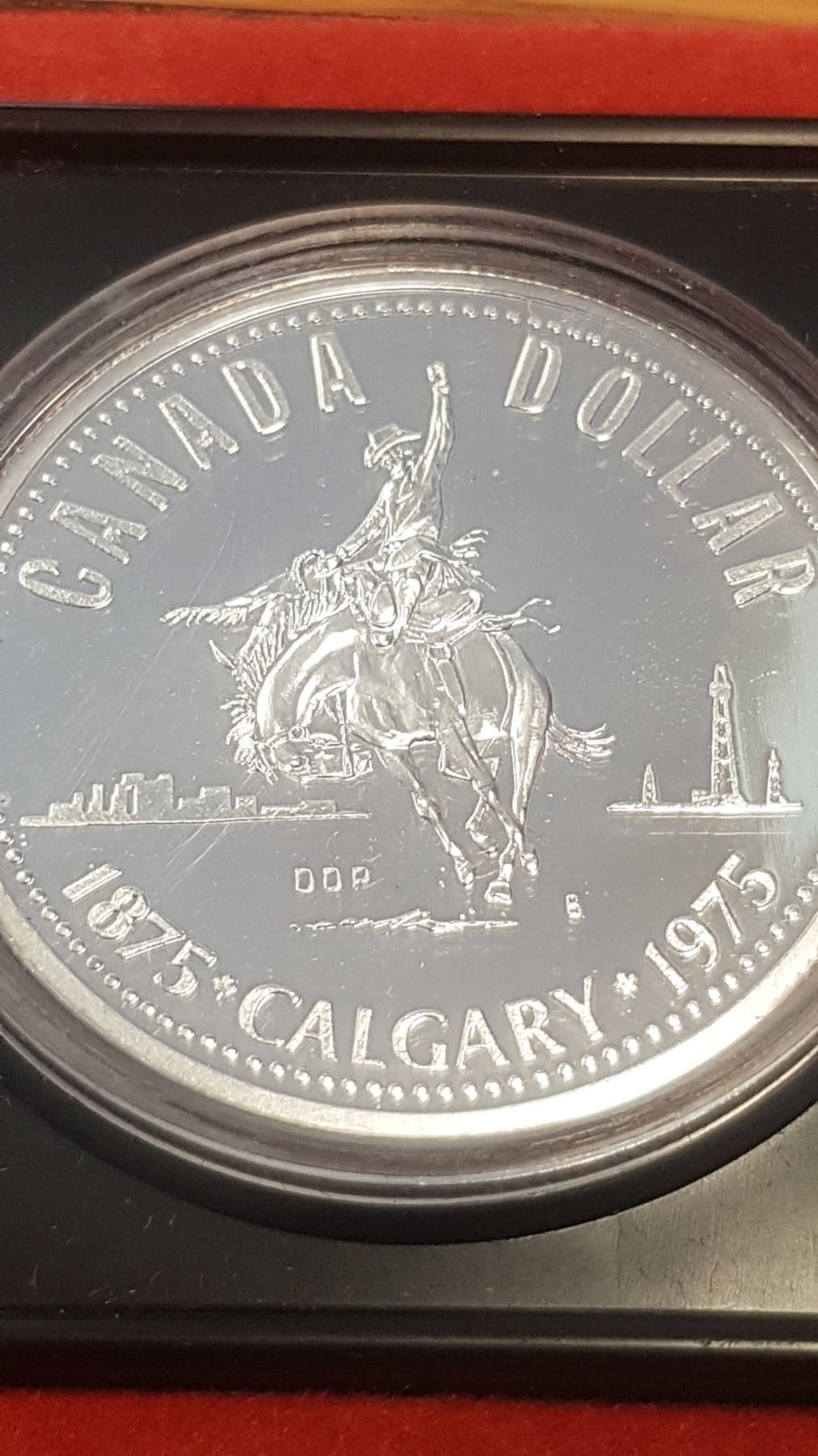 12 Paper bills from around the world, 1 1902 Canadian 1cent piece, Calgary Stampede Silver Dollar 1875/1975, Queens Jubilee Silver Dollar 1952/1977