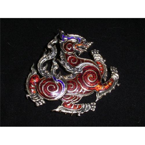 Silver dragon brooch with enamel.