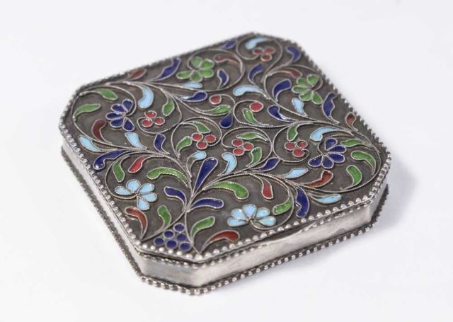 Unmarked. Possibly Persian. Floral design. Approx. 2 1/3" x 2 1/3" x 1/4". (5183)