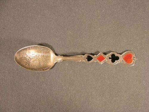 Sterling silver enameled card suit handle bowl embossed spoon, Archrock Mackinac Island, MI. 5.5"