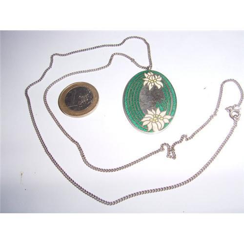 Sterling silver enamelled pendant on silver chain.
