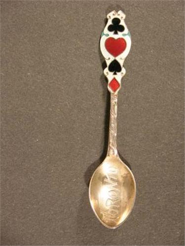 Sterling silver enameled card suit handle spoon. Engraved bowl "Toronto" ca 1920.
