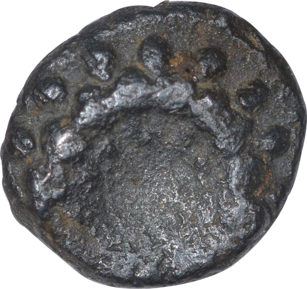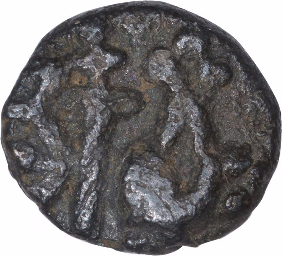 Vijayanagara Empire,Kingdom of Kampili,Kampilideva (1300-1327), Silver Fanam, Obv: upright dragger between circle discuss (left) conch, Rev: beaded circle, 0.20g, 5.46mm, about very fine, Scarce.