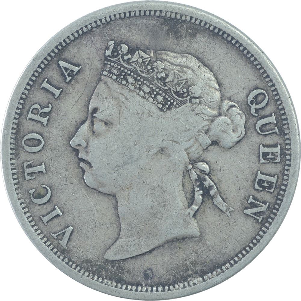Silver Fifty Cent Coin of Queen Victoria of Straits Settlements.
