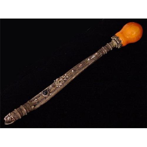 <tr><td>Title: Silver Filigree and Amber Cigarette Holder</td></tr>