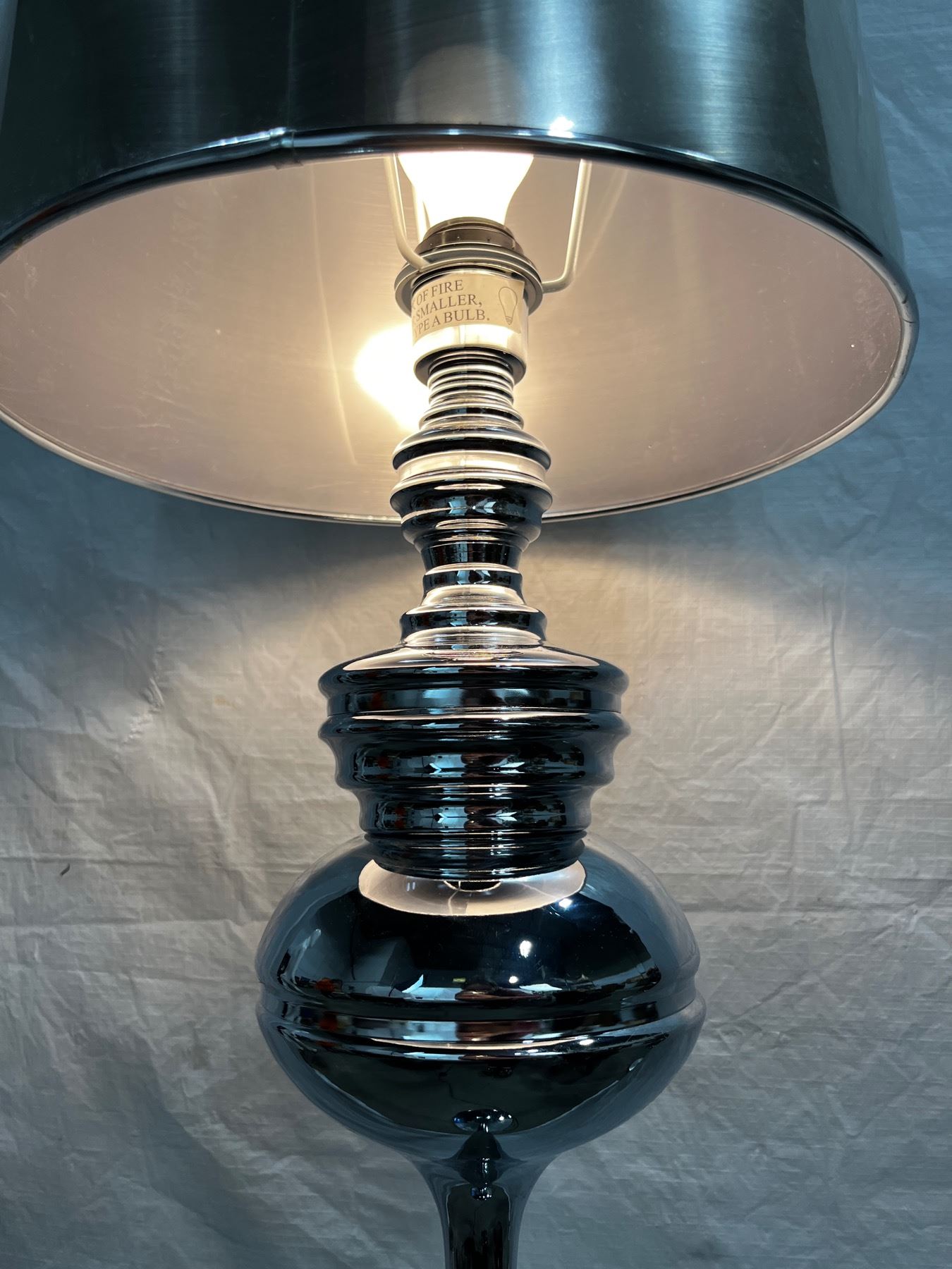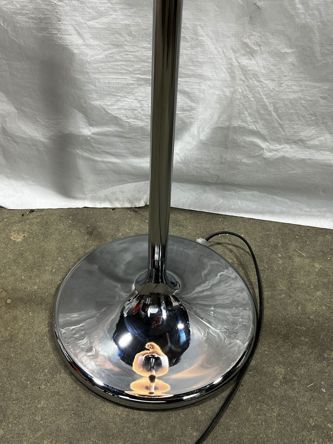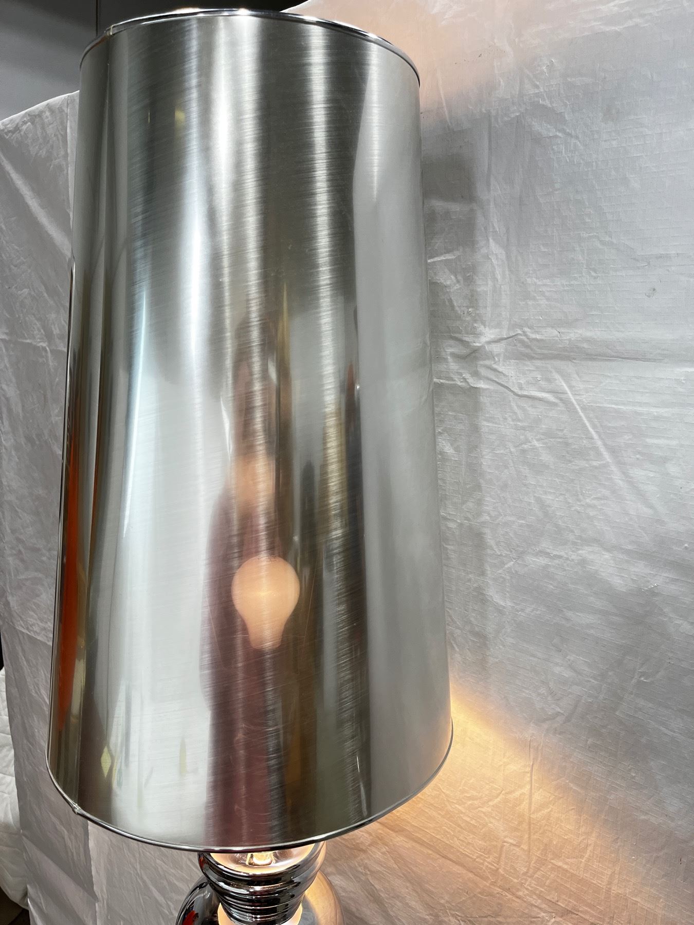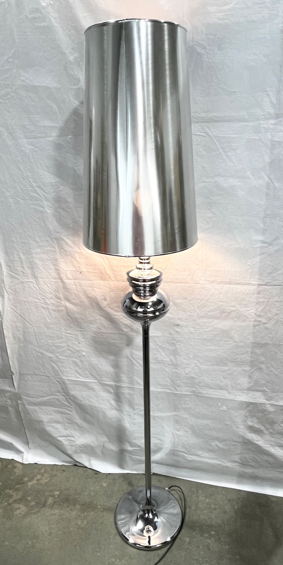 Lamp shade is plastic. Stands 70"Tall