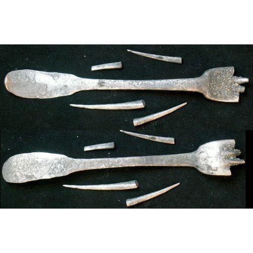 Silver Fork almost complete and visible. Teeth of fork are broken off but included in the lot. (Aug 0139<BR><BR>Notice. For all winners of lots pertaining to the Auguste Shipwreck, please be advised that due to Canadian Laws in reference to the Exportation of Archeological and Shipwreck finds, a request for permission to export these items must to be filled and sent into Canadian Customs for approval for every lot won and shipped outside Canada. In most cases this will cause a delay of 10 to 20 business days for all shipment of lots once payment received. We have been in discussion with Canada Customs and anticipate no problems. We ask for your patience and will do our best to keep each buyer updated on their lots. Please contact us for further information if necessary.