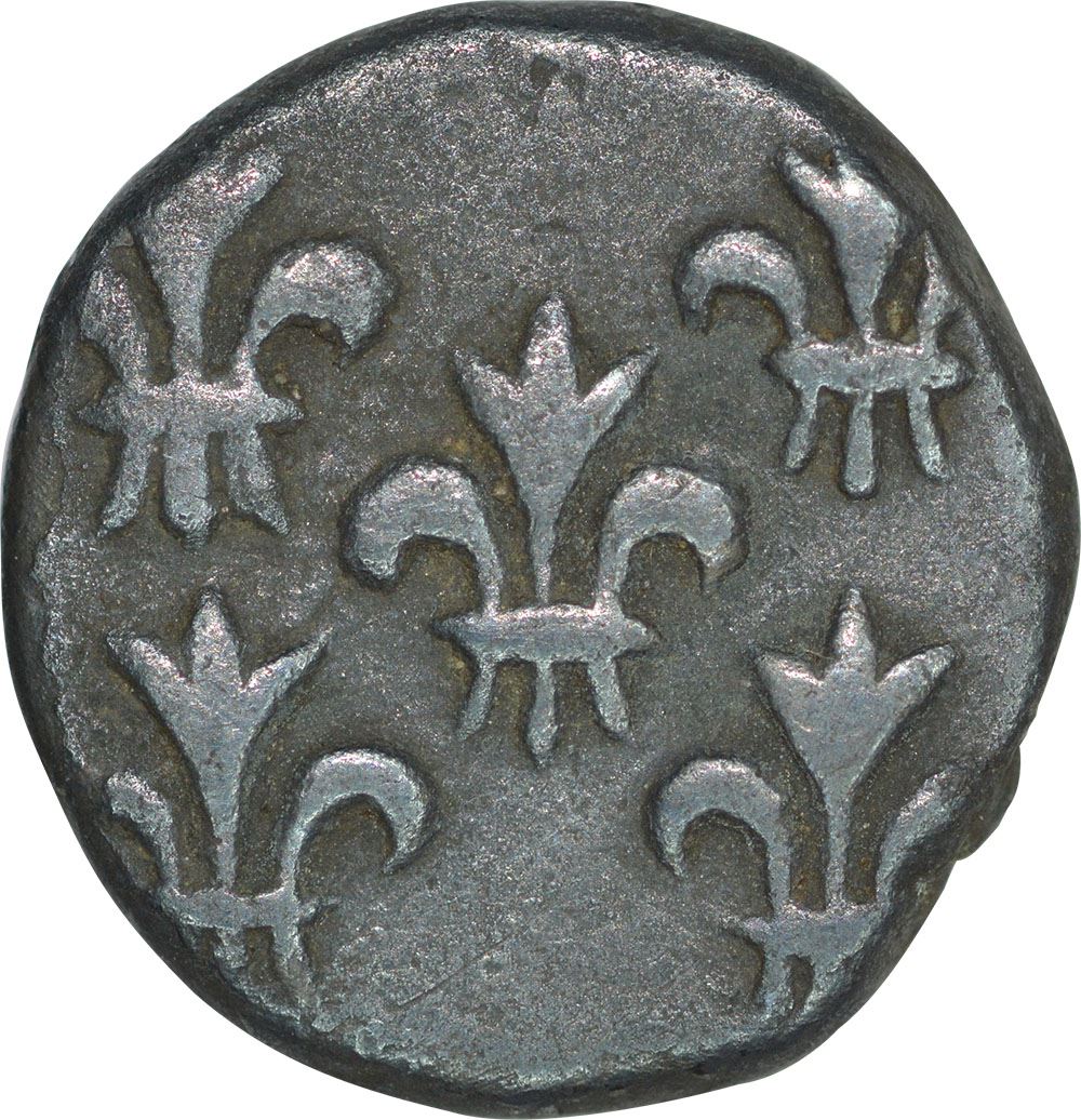 India-French, Pondichery Mint, Silver 4 Royaliners (2 Fanon), Obv: ornamented crown, Rev: 5 fleur-de-lis, (KM # 49), 2.9g,15.13mm, toned, about extremely fine to almost UNC,Extremely Rare.4 Royaliners are quiet rarer than the 2 Royaliners and same like the above specimen, the series of these coins were also struck from Pondichery mint, but these condition and this denominations coins are seldom offered where the crown (Probably Hindu Crown) is complete and also the fleur de lis are completely struck on the coins. Overall lovelystrike.Usually sells for 400-500 Euros in overseas auctions.