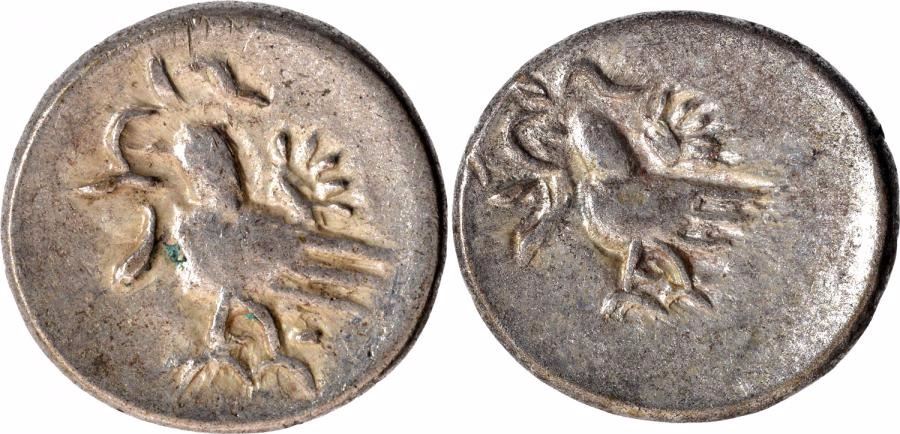 Combodia, Silver Hamsa Coin (Fuang) (2), Obv: bird or hamsa at centre, Rev: uniface, 1.45g, 1.53g 13.07mm, 13.60mm, about very fine.