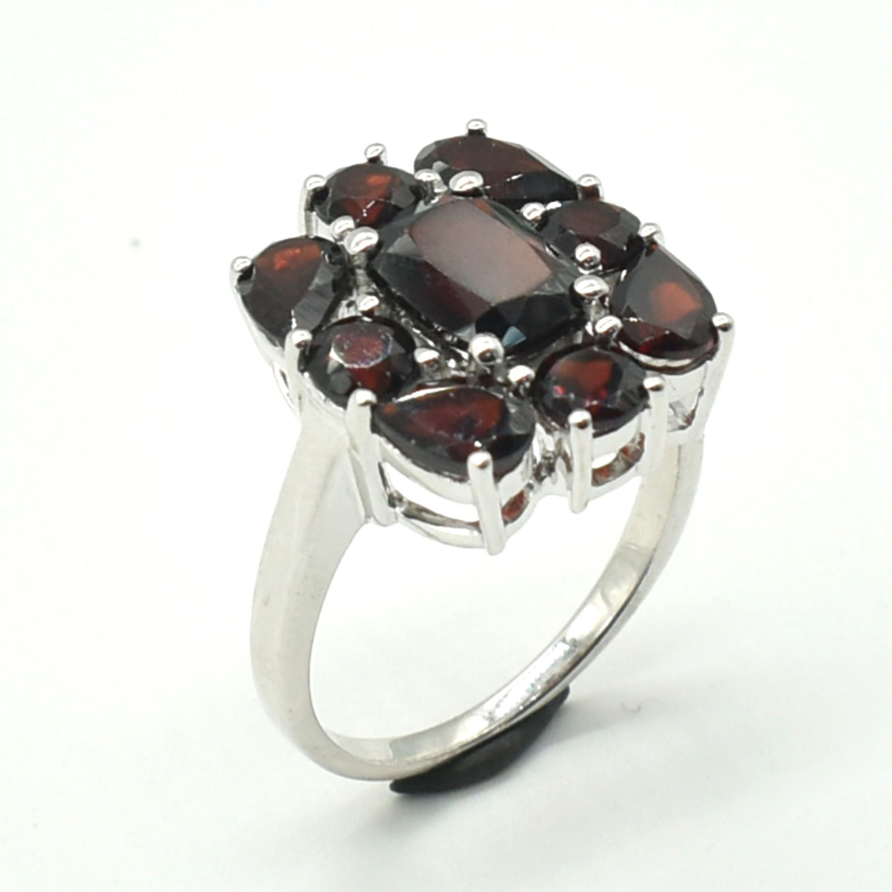 Silver Garnet(4.5ct) Rhodium Plated Ring (~weight 4.85g) Size 7