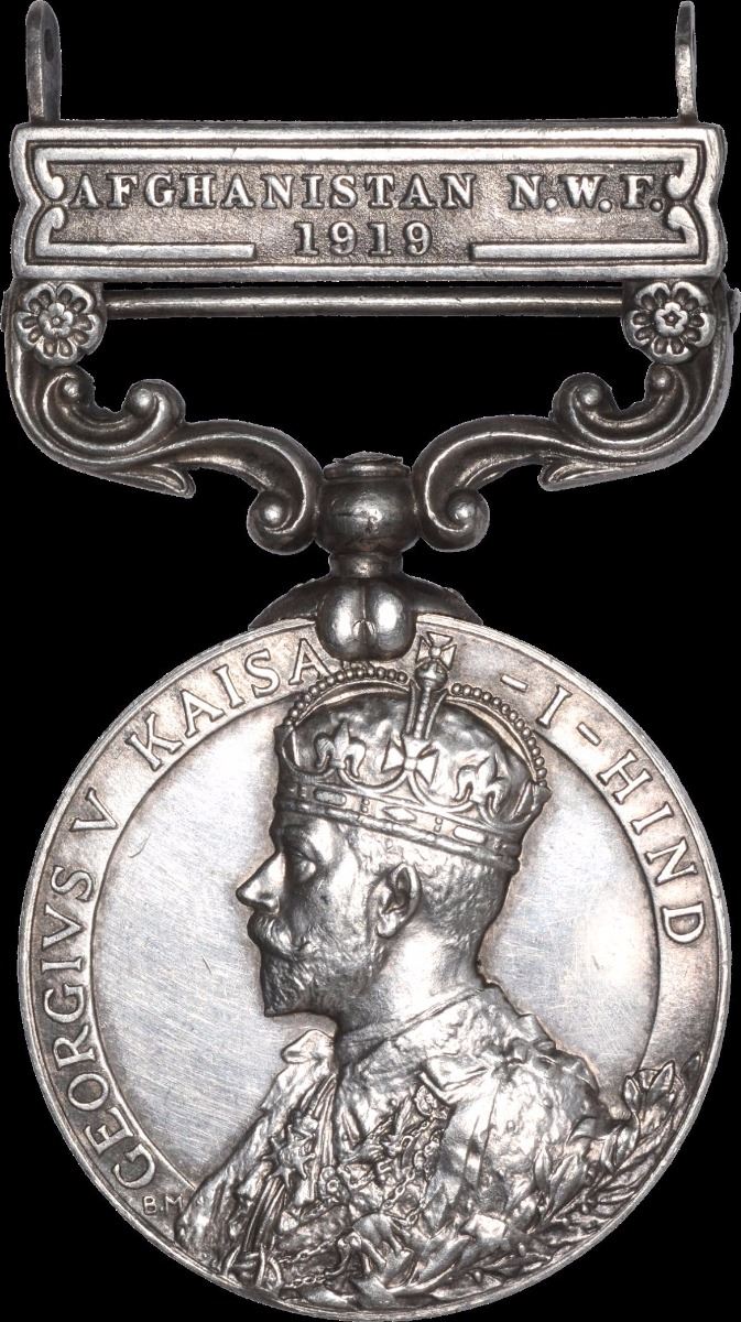 British India (AFGHANISTAN N.W.F. 1919), King George V, Silver General Service Medal, 1919, Kaiser-e-Hind Afghanistan, awarded to 134 SOWAR LADHA KHAN, 41/Cavy, 43.05g, 35mm, about very fine, Scarce.