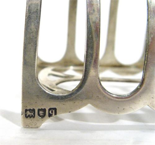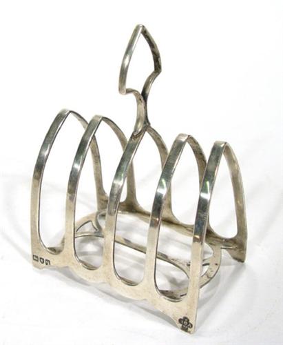 Silver Gothic arch shaped four slice toast rack, London 1912, 11cm high