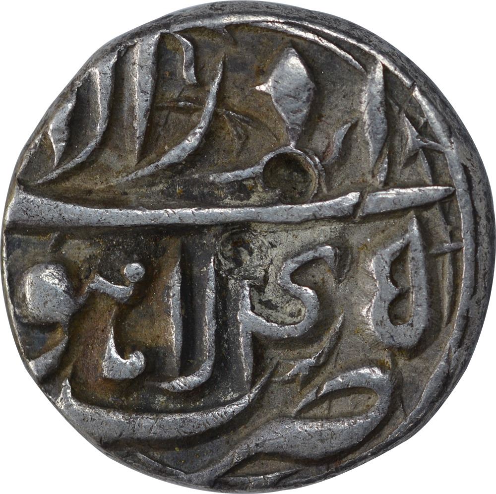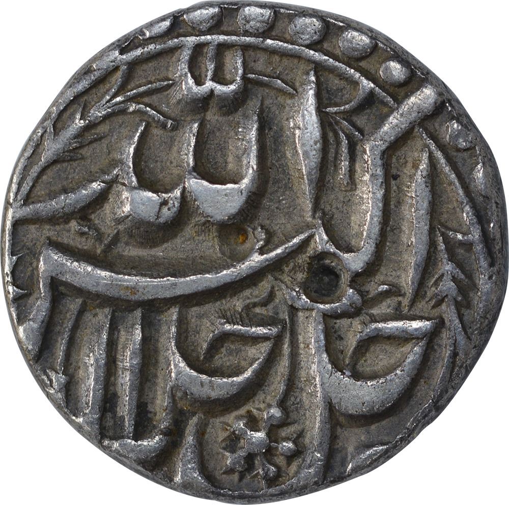 Akbar, LahoreMint,Silver 1/2 Rupee,45 RY, MonthAzar, Obv:jalla jalalahu allahu akbar, flower is visible,Rev:elahi month zarb at bottom,5.59g, 17.54mm,(KM # 66.3),about extremely fine,Scarce.