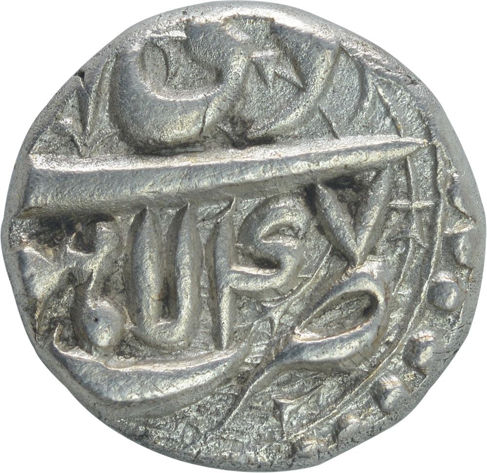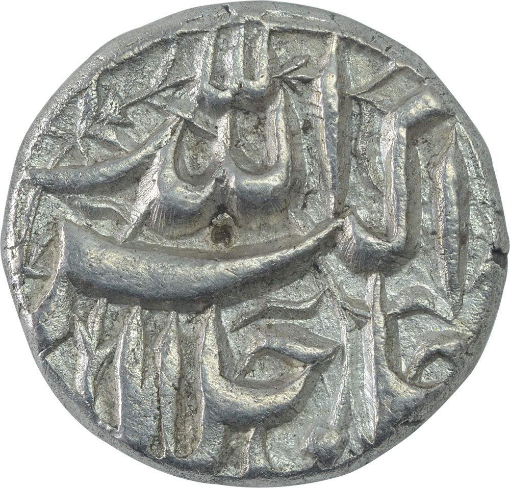 Silver Half Rupee Coin of Akbar of Lahore Mint of Di Month.