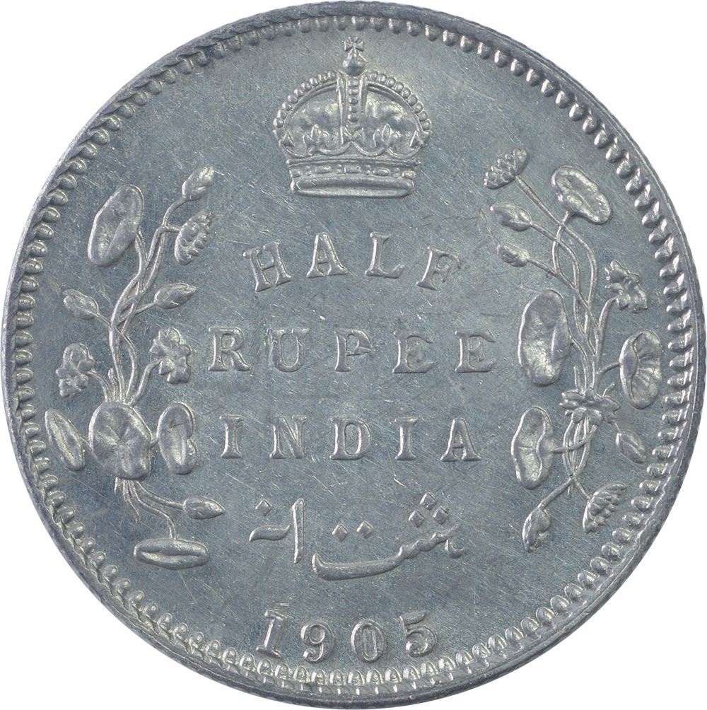 Silver Half Rupee Coin of King Edward VII of Calcutta Mint of 1905.