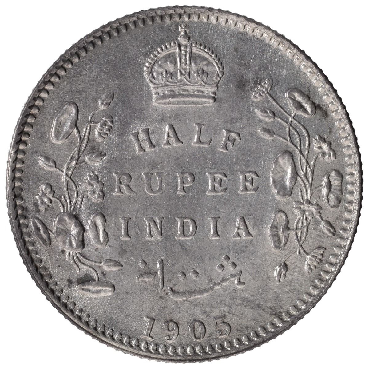 Silver Half Rupee Coin of King Edward VII of Calcutta Mint of 1905.