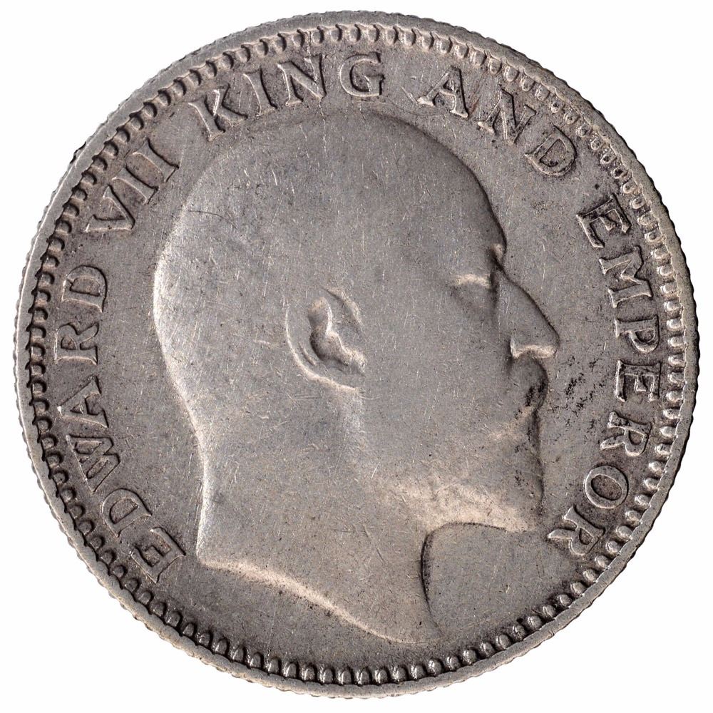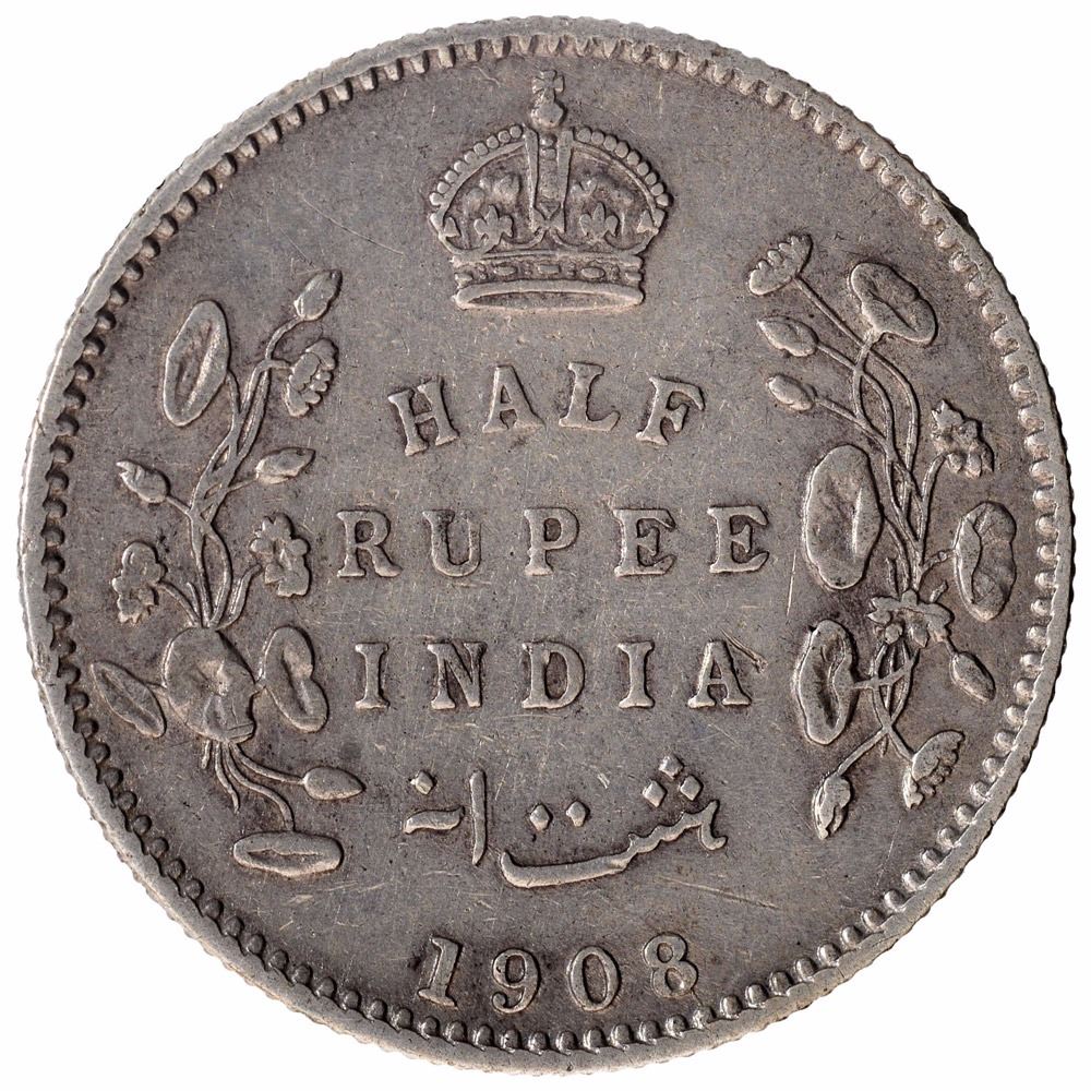 Silver Half Rupee Coin of King Edward VII of Calcutta Mint of 1908.