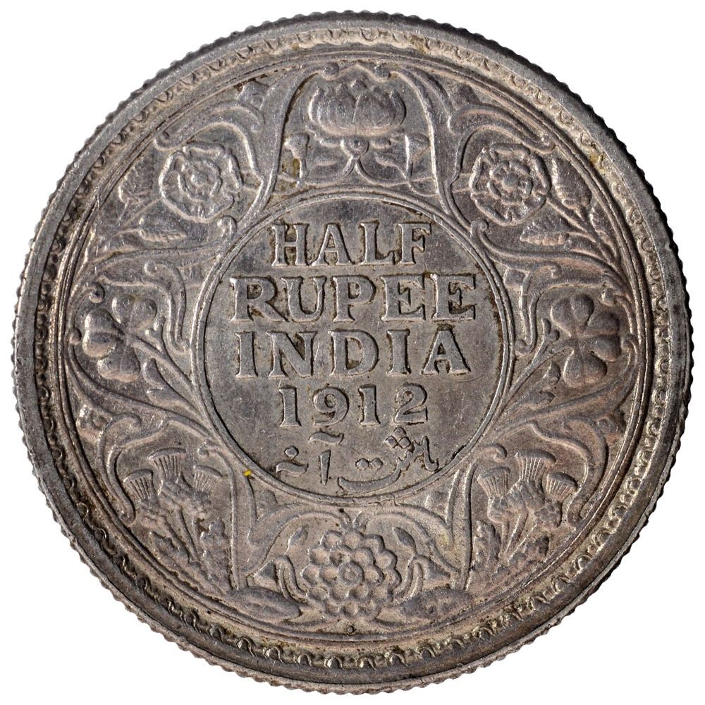 Silver Half Rupee Coin of King George V of Bombay Mint of 1912.