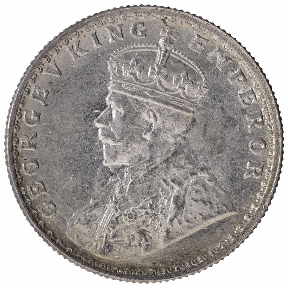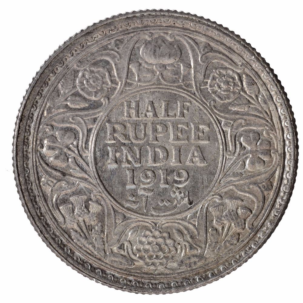 Silver Half Rupee Coin of King George V of Bombay Mint of 1919.