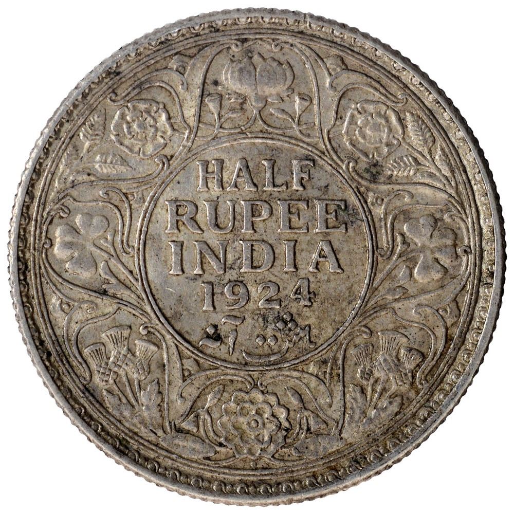 Silver Half Rupee Coin of King George V of Bombay Mint of 1924.