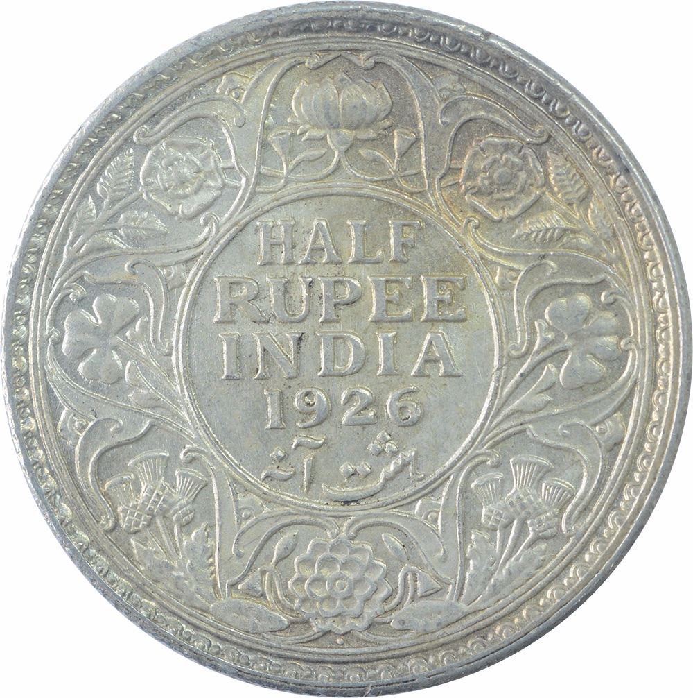 Silver Half Rupee Coin of King George V of Bombay Mint of 1926.