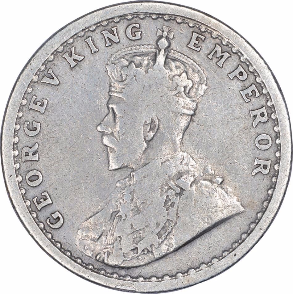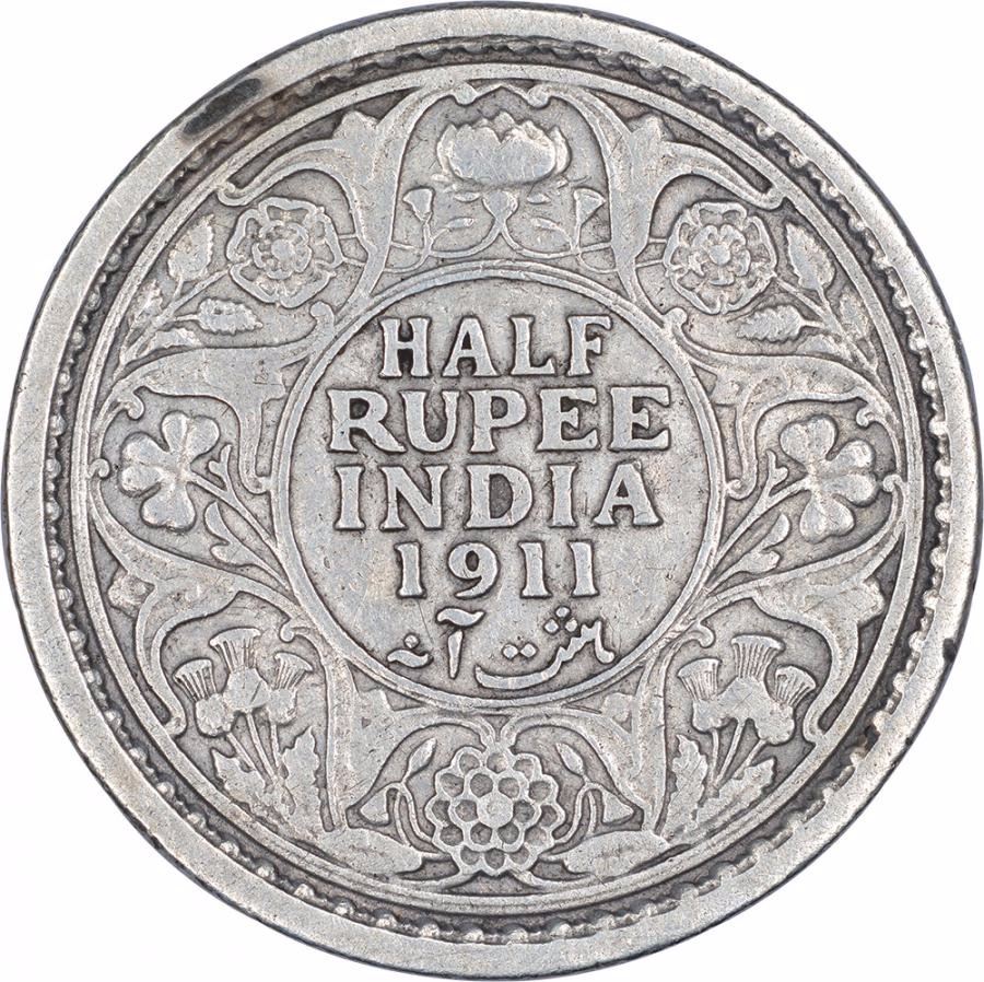 Silver Half Rupee Coin of King George V of Calcutta Mint of 1911.