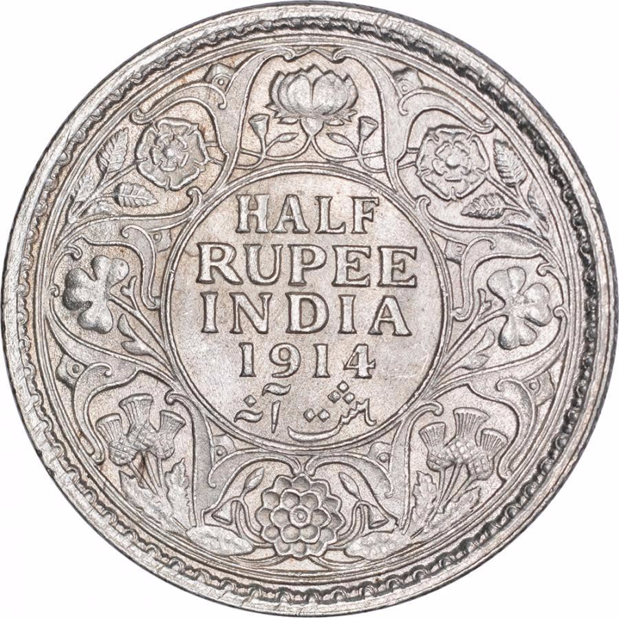 Silver Half Rupee Coin of King George V of Calcutta Mint of 1914.