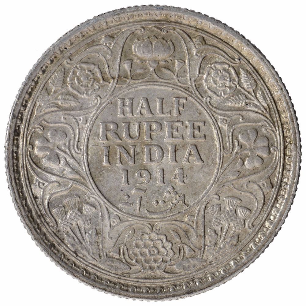 Silver Half Rupee Coin of King George V of Calcutta Mint of 1914.