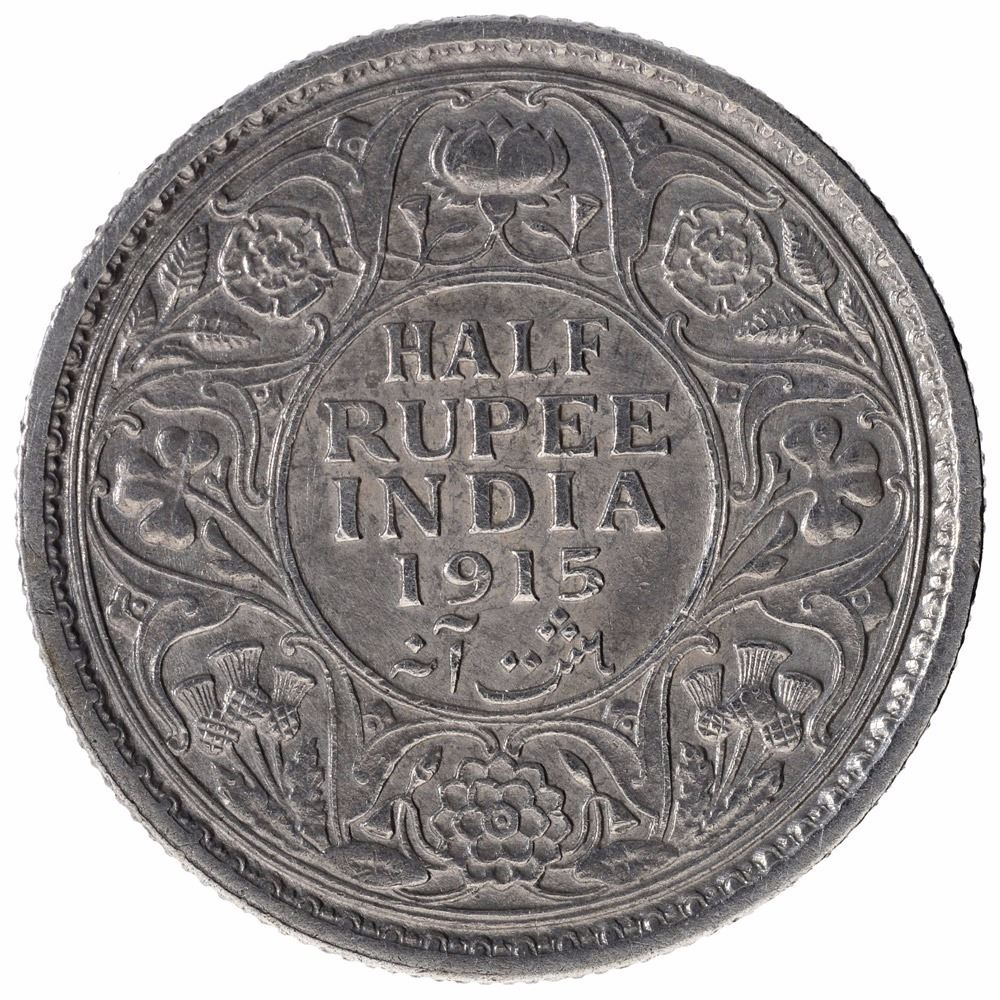 Silver Half Rupee Coin of King George V of Calcutta Mint of 1915.