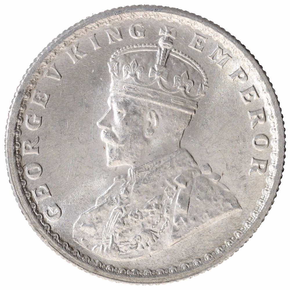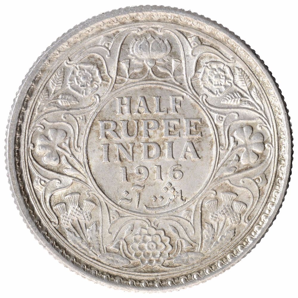 Silver Half Rupee Coin of King George V of Calcutta Mint of 1916.