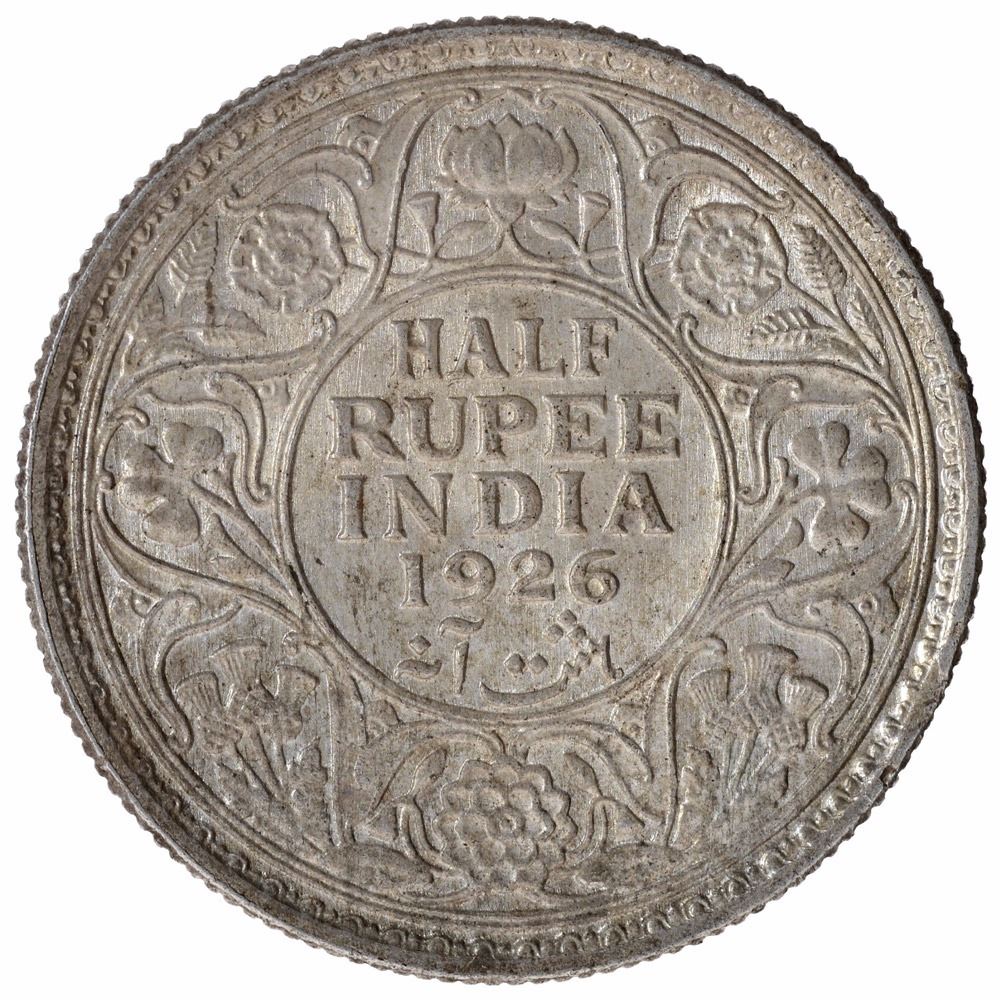 Silver Half Rupee Coin of King George V of Calcutta Mint of 1926.