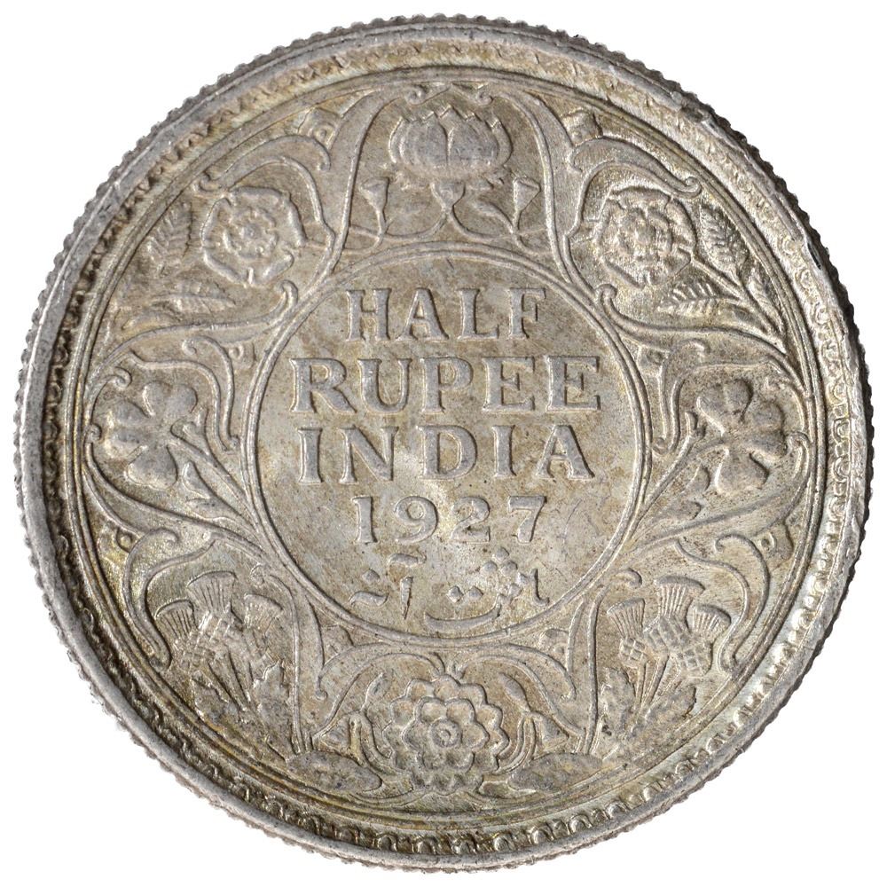 Silver Half Rupee Coin of King George V of Calcutta Mint of 1927.