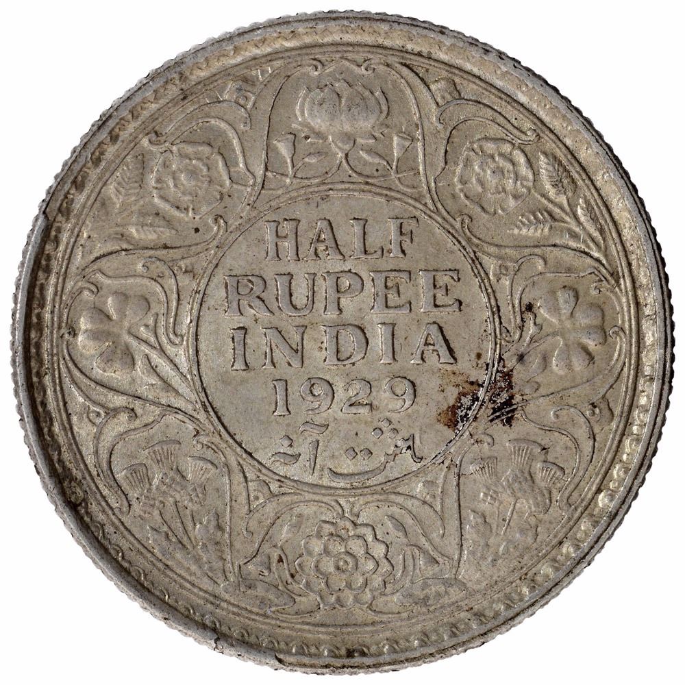 Silver Half Rupee Coin of King George V of Calcutta Mint of 1929.