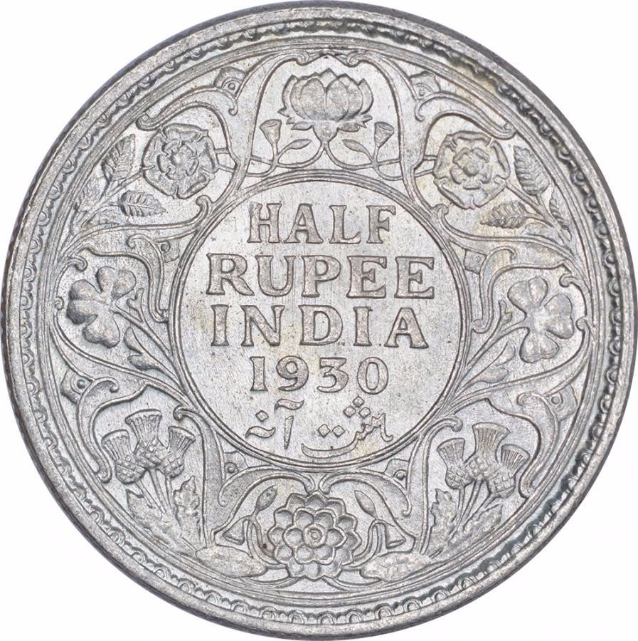 Silver Half Rupee Coin of King George V of Calcutta Mint of 1930.