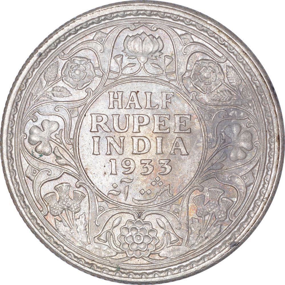 Silver Half Rupee Coin of King George V of Calcutta Mint of 1933.