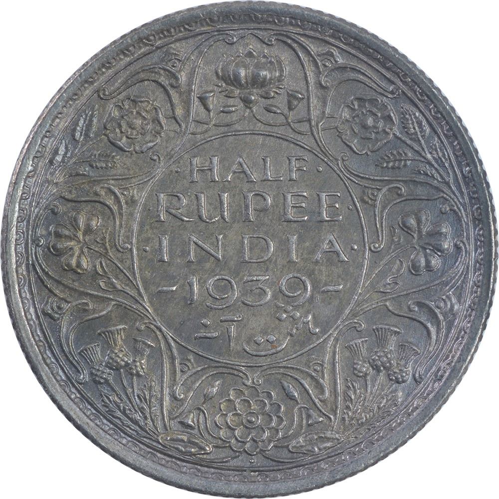 1939,King George VI,Silver 1/2 Rupee,Bombay Mint,tonedUNC.