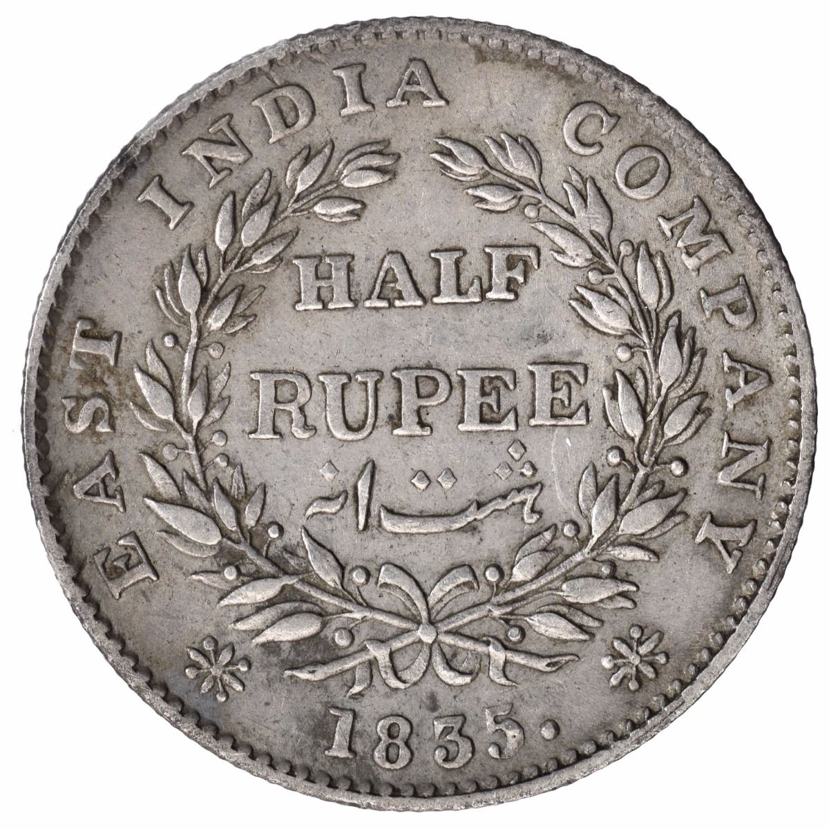 Silver Half Rupee Coin of King William IIII of Calcutta Mint of 1835.