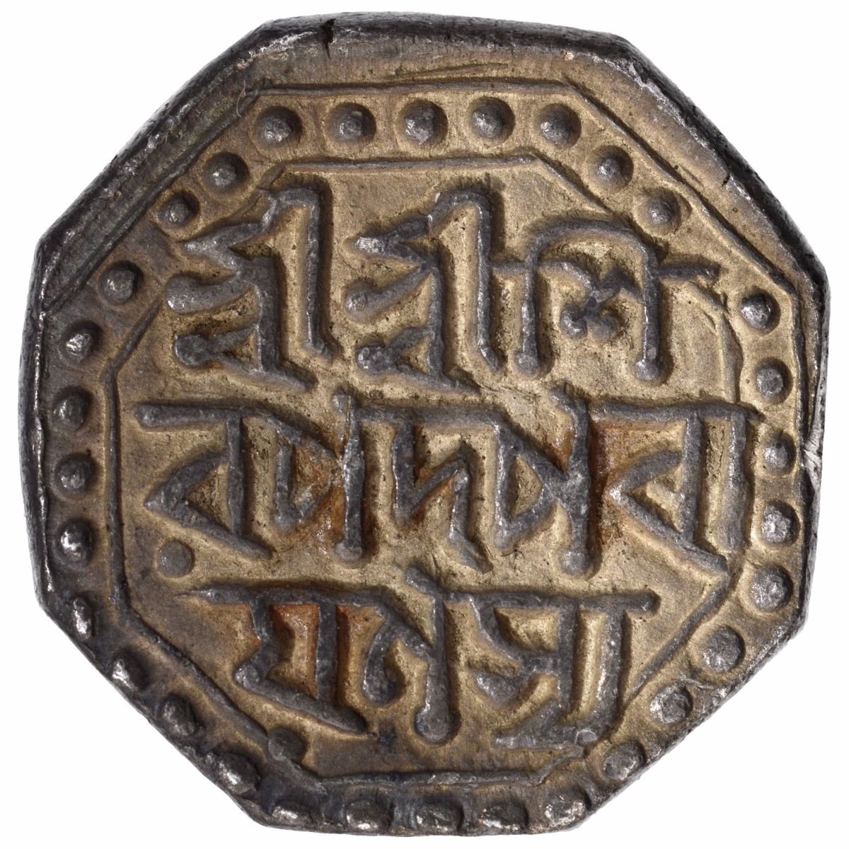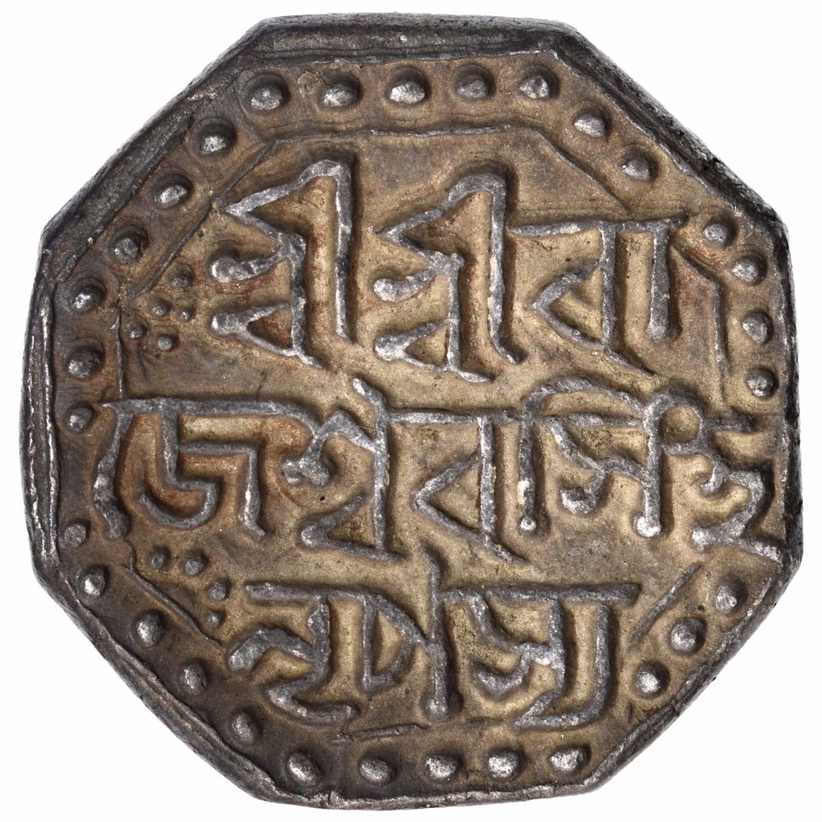 Assam, Rajesvara Simha, Silver 1/2 Rupee, Obv:assamese legend in three linessri sri si / va pada para / yanasya, no dots,Rev:assamese legend in three linessri sri ra / jesvara simha / nrpasya,dots upper and lower left,5.8g, 16.94mm,(S.K.Bose # O 55.5),about extremely fine,Scarce.