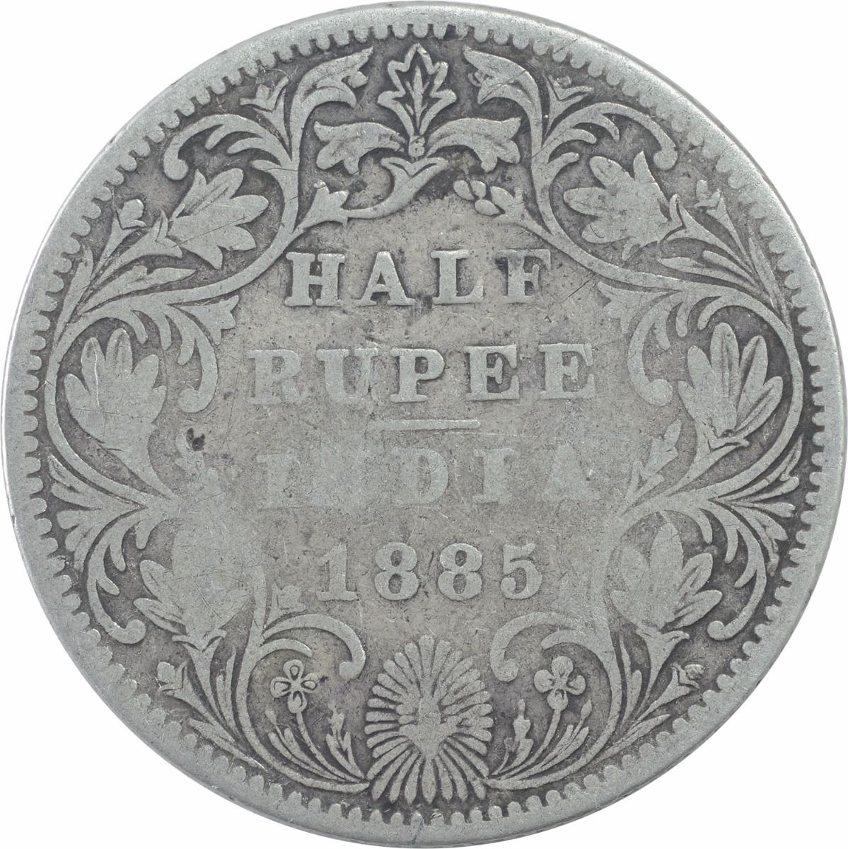 1885,Victoria Empress,Silver 1/2 Rupees, Bombay Mint, A/II/B raised, (PR # 294),about very fine.