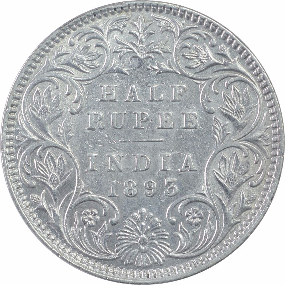 Silver Half Rupee Coin of Victoria Empress of Bombay Mint of 1893.