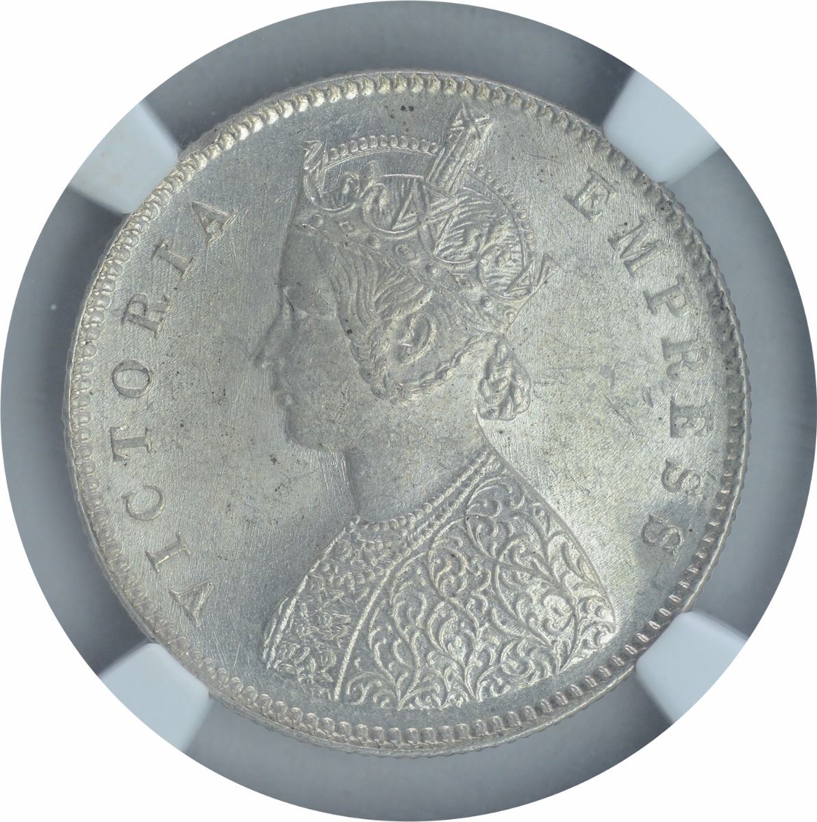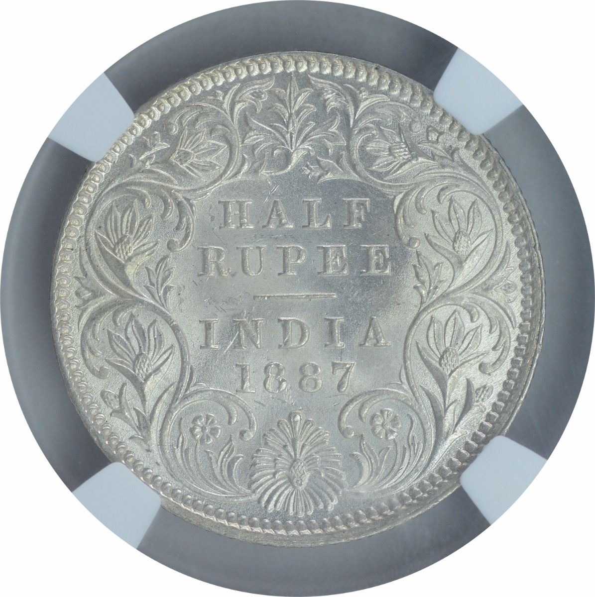 1887, Victoria Empress, Silver 1/2 Rupee, Calcutta Mint, A/I/C incuse, (PR # 271), graded slabeed by NGC as MS 63, Very Rare.