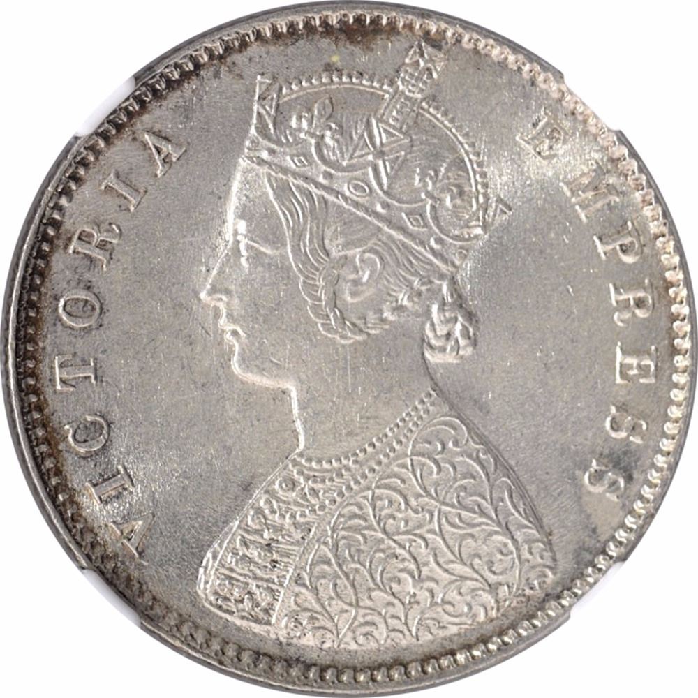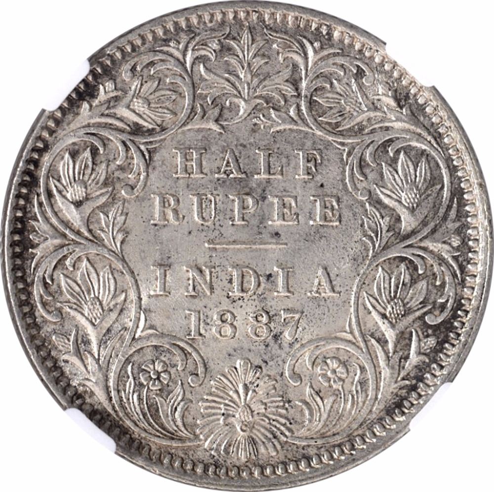 1887, Victoria Empress, Silver 1/2 Rupee,Calcutta Mint,A/I/C Incuse, (PR # 271/GK # 637), graded slabbed by NGC as MS 63,Rare.