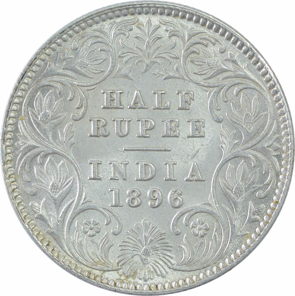 Silver Half Rupee Coin of Victoria Empress of Calcutta Mint of 1896.
