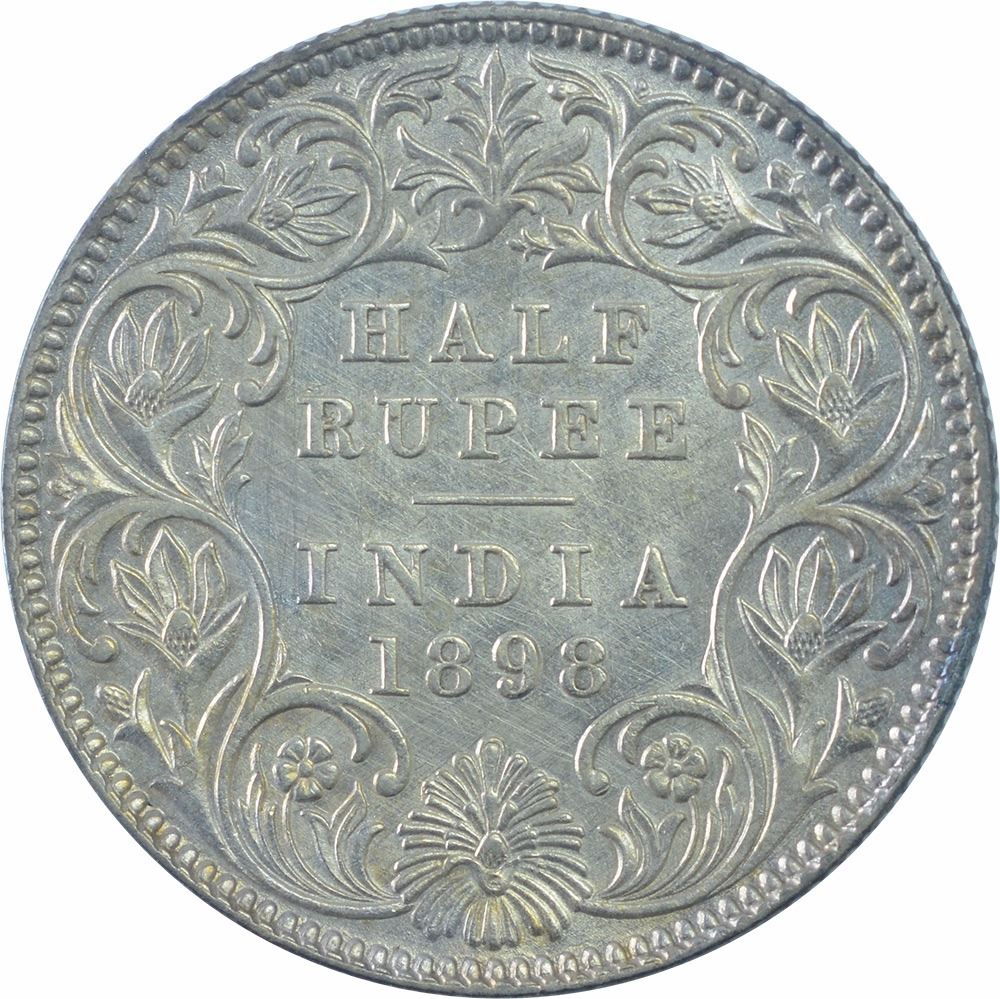 Silver Half Rupee Coin of Victoria Empress of Calcutta Mint of 1898.