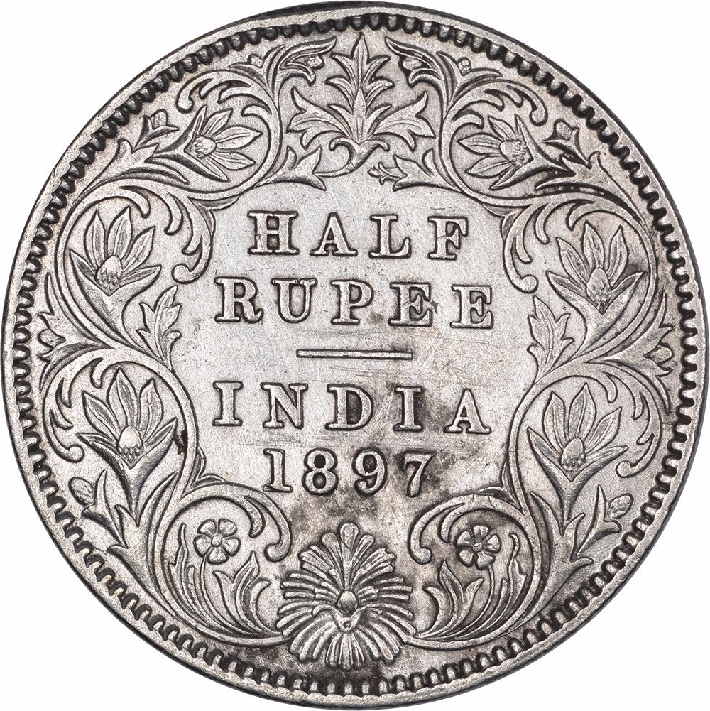 Silver Half Rupee Coin of Victoria Empress of Calcutta mint of 1897.