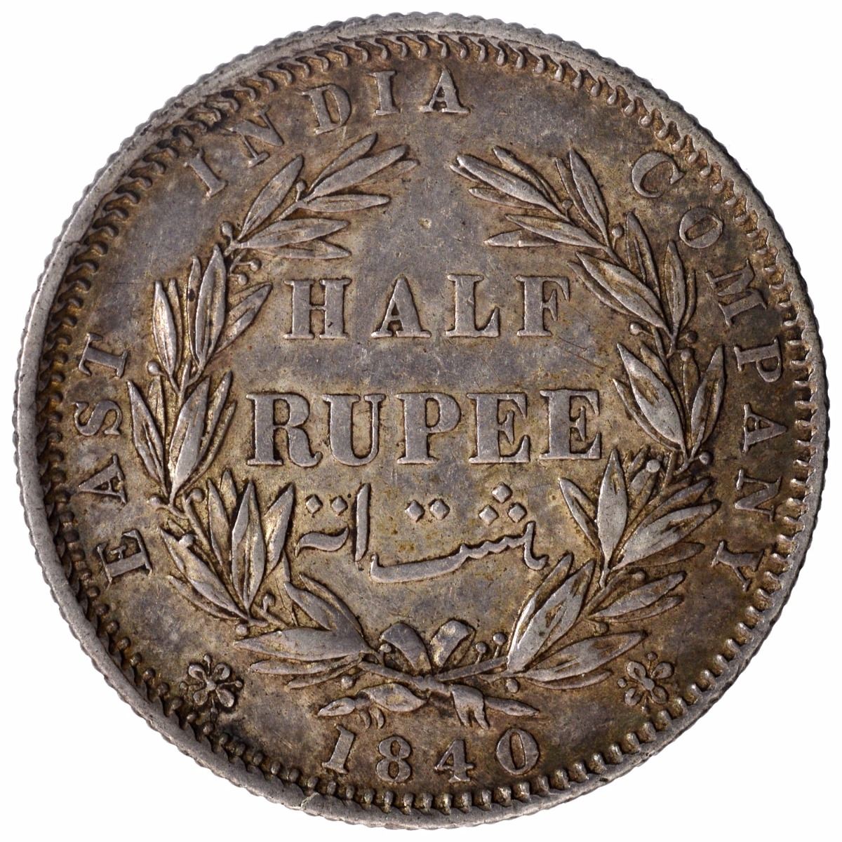 Silver Half Rupee Coin of Victoria Queen of Calcutta Mint of 1840.