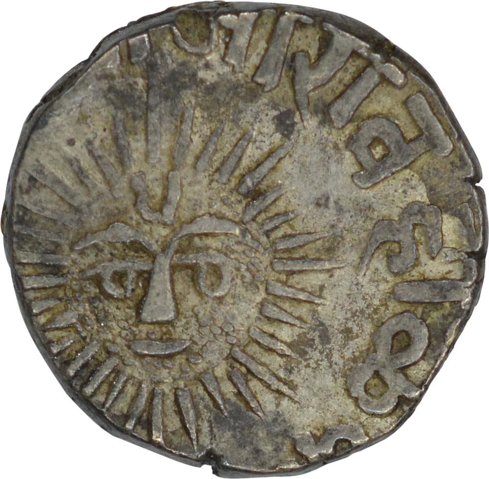 Indore, Tukoji Rao III, Silver 1/2 Rupee, Obv: sikka mubarak shah alam II in sprays, Rev: sunface around legend, 5.65g, 16.26mm (KM # 43), about very fine.