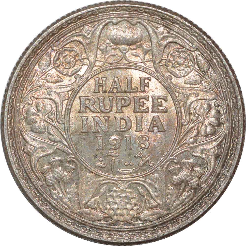 Silver Half Rupee of King George V of Bombay Mint of 1918.