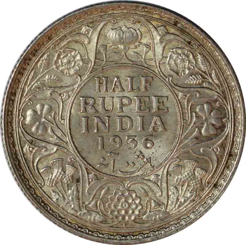 Silver Half Rupee of King George V of Bombay Mint of 1936.